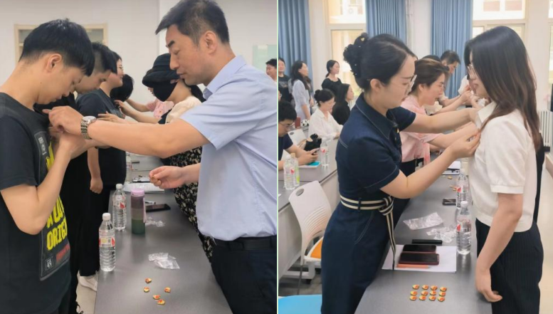 教师党员代表为30位新党员佩戴党员徽章,2022级孟成真代表新发展党员做表态发言,永利娱乐场官网