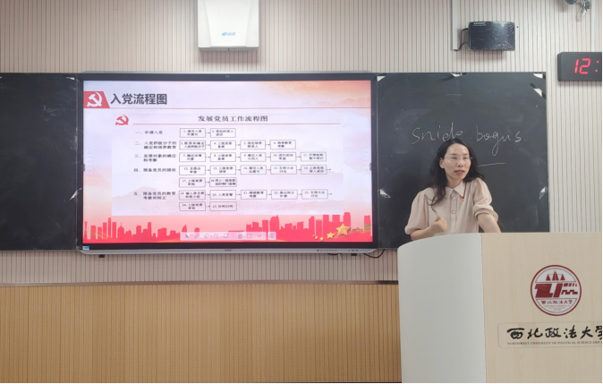 在培训的第二个阶段,李小斐从端正入党动机展开,着重讲述入党流程的五个阶段“入党申请”“入党积极分子的确定和培养”“发展对象的确定和考察”“预备党员的接收”与“预备党员的教育、考察和转正”,强调了各阶段的关键内容与注意事项。