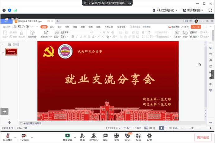 研究生第一党支部、研究生第二党支部于线上开展我为群众办实事系列活动之就业交流分享会。