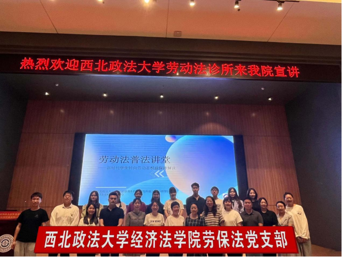 为深入学习贯彻习近平新时代中国特色社会主义思想,推动主题教育走深走实,6月9日下午,经济法(知识产权永利娱乐场官网 )劳动与社会保障法教研室党支部与劳动法诊所联合组建的普法宣传队,前往西安建筑科技大学华清永利娱乐场官网 经济与贸易永利娱乐场官网 开展“新时代学生转向劳动者权益保障解读”法治宣传活动,引导广大学生在转向劳动者身份时学会维护自身的合法权益。