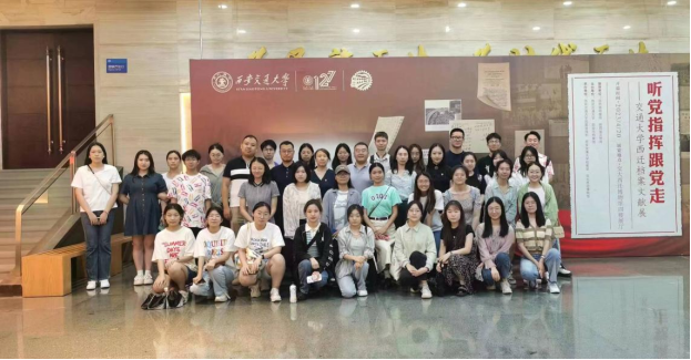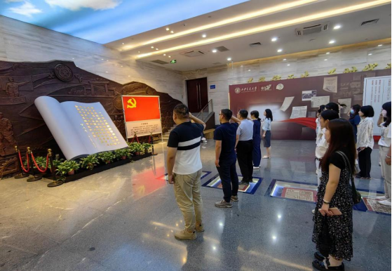 首先,支部成员在博物馆序厅面向党旗进行宣誓,坚定自身作为党员的决心。随后,在讲解员的带领下,大家沿着习近平总书记当初的足迹走进交大西迁博物馆,在“溯源”中深入了解西交大厚重的办学渊源,步入“西迁”学习感人的西迁历史,迈向“致远”展示交大显著的教学成果。