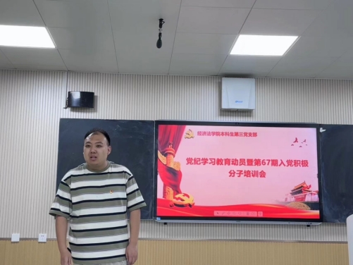 本科生第三党支部开展党纪学习教育动员暨第67期入党积极分子培训会,支部全体党员及入党积极分子参加会议,会议由党支部书记张兴浩主持。