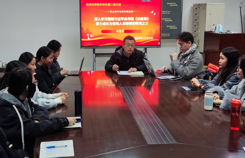 12月8日晚,永利娱乐场官网 本科生第二党支部在长安校区正心楼资料室组织开展党支部书记讲党课活动。在校党员近30人参加。党支部书记李冬冬围绕《深入学习贯彻习近平总书记<论教育>,努力成长为党和人民需要的有用人才》为在校党员讲授专题党课。