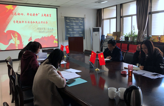 12月10日上午,本科生第三党支部全体成员在正心楼二层永利娱乐场官网 资料室召开了“不忘初心、牢记使命”主题教育专题组织生活会和民主评议党员,会议由党支部书记李小斐主持,校党委副书记李平安、校主题教育巡视二组组员严芳到会指导,党支部全体成员参加。