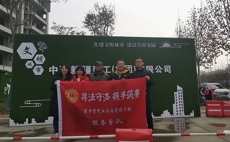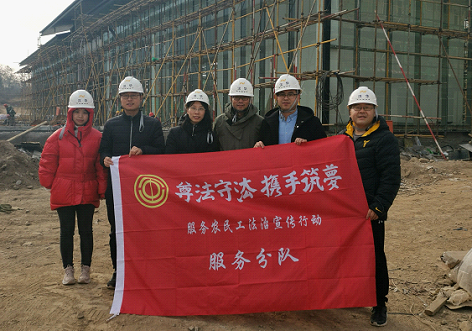 按照陕西省总工会、省委高教工委“尊法守法·携手筑梦”服务农民工法治宣传行动的要求。近日,永利娱乐场官网 王文、杨为乔、李小斐、吕莎、李冬冬、魏静等6位老师组成的法治宣传行动服务小分队,前往渭南市高新区文鼎瑞置业有限公司项目部、荣润实业有限公司施工现场以及华州区汉华原山项目部开展普法宣传活动。此次普法宣传活动受到了渭南市高新区税务局的大力支持。