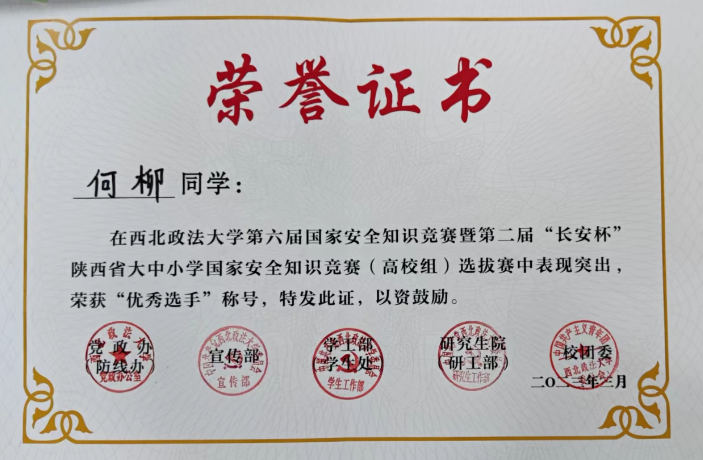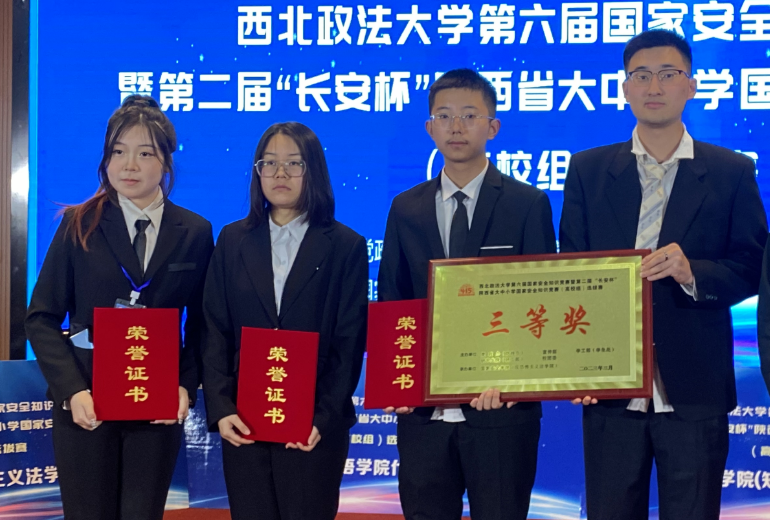 3月29日,第六届国家安全知识竞赛暨第二届“长安杯”陕西省大中小学国家安全知识竞赛(高校组)选拔赛决赛长安校区满天星学术报告厅举行。2021级何柳、马枞芊,2022级赵一芮、孙吊吊组成的经济法(知识产权)永利娱乐场官网