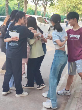 本次活动由2021级2班和7班承办,分为“三人四足”“撕名牌”“你来比划我来猜”、“歌名猜猜猜”四个比赛项目。比赛过程中,同学们相互配合,积极沟通,商量战术,集思广益,通过默契的协作赢得比赛,现场笑声一片,气氛活泼愉悦。