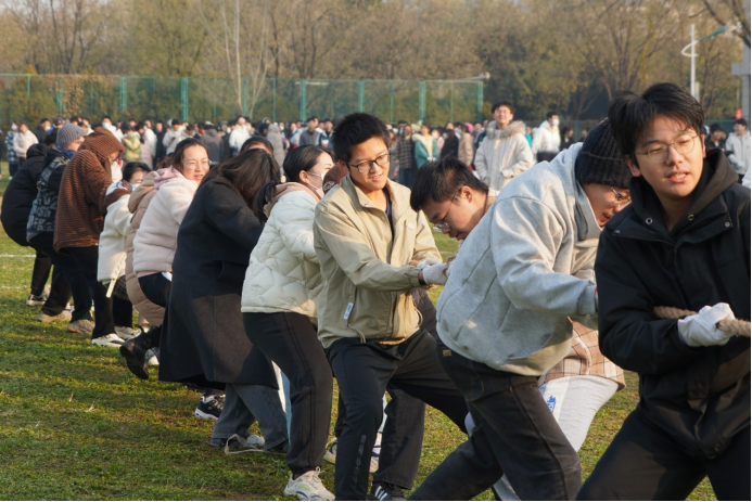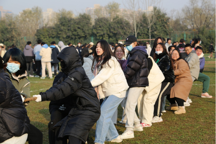 宁静冬日,活力无限。以体育人,健康强国。为充分发挥体育育人功能,增强同学们班级凝聚力向心力,促进学生全面发展,我院于12月3日在长安校区足球场举办纪念“一二九”运动拔河比赛。学院党委副书记、副院长李恒,团委书记王文,团总支书记李冬冬、张兴浩,辅导员来沅晖、王可卓老师参加活动,本科生2021级、2022级、2023级各班及2023级研究生共28支队伍参加比赛。