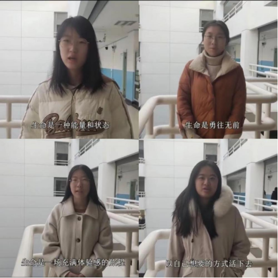 在筹备本次班会前,班级心理委员支馨联动班级其余班委一起商讨活动形式与内容,并制定出了详细的流程和计划。同时将班会的思考问题提前发布,使同学们能够利用课余时间积极思考,在班会时可以有所感有所言。除此之外,支馨同学也深入同学们之中,采访同学们关于“什么是生命”。同学们纷纷表达了自己的想法与见解。