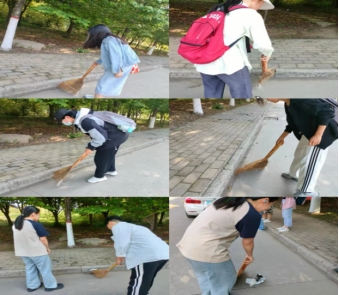 2022级3班、4班组织班级同学开展清扫美丽校园的劳动教育实践活动。