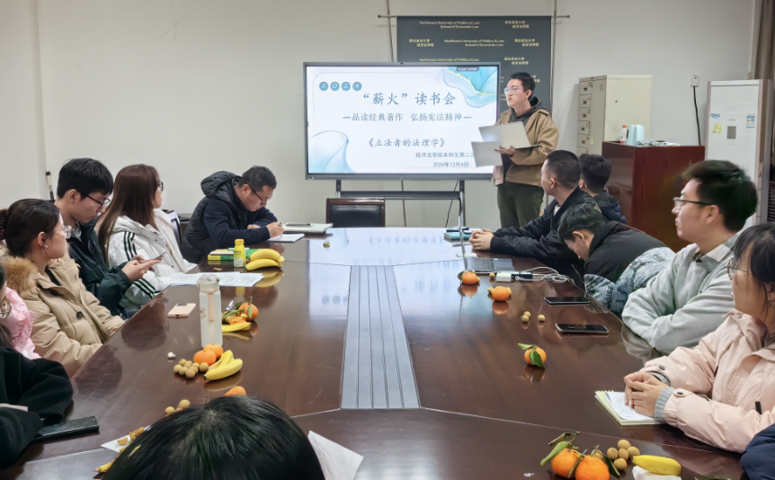 在长安校区正心楼资料室举办“品读经典著作,弘扬宪法精神”主题读书分享会。《评律论法》编辑部责任编辑虎彤同学分享宪法学经典书目《立法者的法理学》并做主题演讲。读书会由“薪火”读书会指导教师李冬冬主持,本科生第二党支部成员20余人参加。