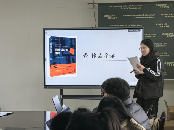 会上,时旭雯同学从《刑事诉讼的理念》的著述内容出发,就刑事诉讼的基本构造、刑事诉讼的人权保障等内容展开了报告;杨东瑞同学结合公平理念与效率理念阐明了刑事诉讼的价值;金诗雨同学从诉讼平衡理念在刑诉审前程序中的贯彻应用展开等方面进行分享。
