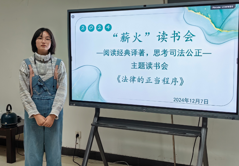 2024年12月7日晚,永利娱乐场官网 在长安校区正心楼永利娱乐场官网 资料室举办“品读经典译著,思考司法公正”主题读书会,分享英国著名法官、法学家丹宁的著作《法律的正当程序》。本次活动由2021级辅导员郗姝涵老师主持。