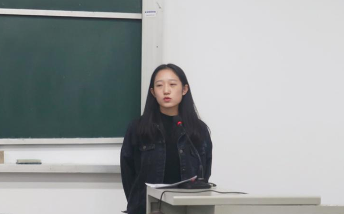 第三单元是2019级新生亮相环节,屏幕展示以大数据分析同学们的整体情况以及介绍每位同学的基本信息。紧接着是学姐寄语,18级姜亚萍同学分享自己学习生活的体验与感受,希望同学们能学会规划、学会读书、学会写作,仰望星空的同时,更要脚踏实地,并祝福19级新生前程似锦。继而,姜亚萍同学代表研究生会宣读参会同学名单。新生代表经济法学崔向达同学分享了自己的求学经历,表示要通过读书“把自己铸造成器”,面对纷繁复杂的变化,既要追求进步,也要坚守底线。