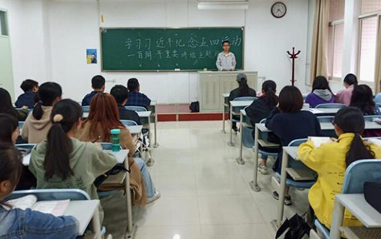 根据活动安排,各班团支部书记带领同学们重读习近平总书记在纪念五四运动100周年大会上的讲话,认真学习习近平总书记的重要讲话精神。宣传委员查找资料,宣讲五四运动对中国命运的作用,与大家一同研读五四运动“爱国、进步、民主、科学”的精神内涵,五四精神在不同历史时期的具体体现,使同学们加深对五四运动的认识,深切感受到传承和发扬五四精神的责任感和使命感。最后,团员同学们纷纷上台分享学习感悟,立志在担当中锻炼自己,为时代发展奉献力量,在实现中国梦新征程里实现自我价值。