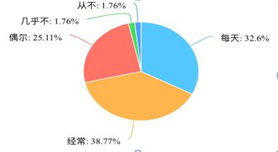 由打扫宿舍频率的调查数据可知,频率较高的选项“经常”和“每天”占比超过七成,有25.11% 的同学偶尔打扫,几乎不打扫卫生的同学也确有存在。由此,我们可大致得出结论,绝大多数的同学热爱干净整洁,但是一个宿舍平均约有一至两位同学卫生习惯较差。