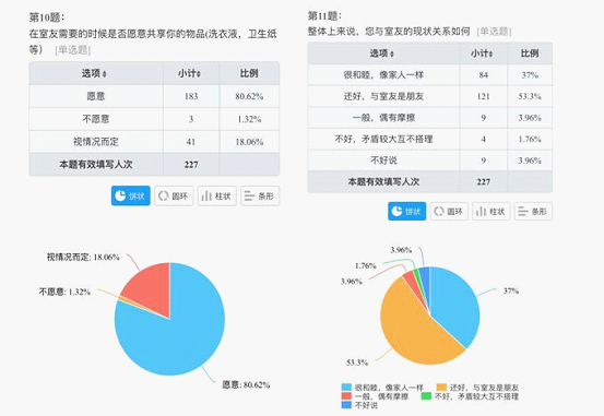 对于大学生宿舍生活的问题,结合此次调查报告,我们认为,同学们在面对室友间的矛盾时,只有互相理解,互相包容,理性看待,才能让问题得到妥善的解决,才能获得一个更好的宿舍环境。在此,我们希望每一个同学都能够与室友和睦相处,共同度过精彩的大学时光。