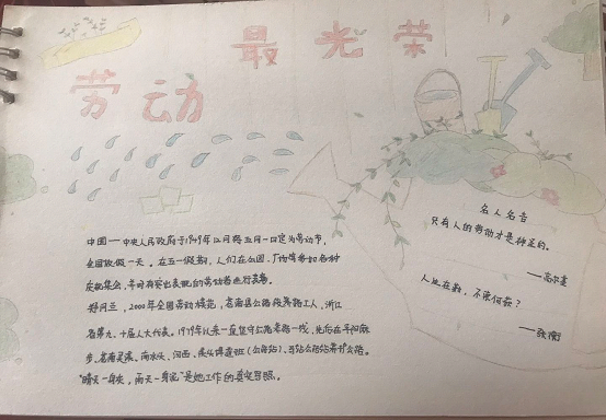 此次主题活动的开展,凝聚着永利娱乐场官网 全体同学对劳动者的敬意。同学们在一张张白纸上,书写、描绘自己心目中的最美劳动者。同学们纷纷表示,作为一名大学生,要培养劳动感情,养成劳动习惯,珍惜劳动成果,积极参加社会实践活动,践行“西迁精神”,为祖国建设舔砖加瓦。(2017级3班蔡捷供稿)