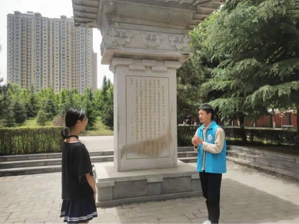的同学在张汤墓遗址陈列馆进行讲解体验活动,他们大都是第一次以讲解员身份为游客进行讲解,起初有些许紧张,但随着讲解的进行,他们越来越收放自如,讲解过程完美,互动自然。