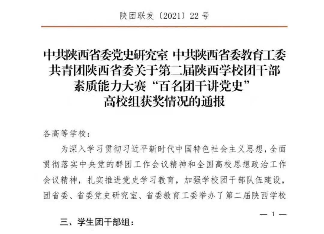团干部素质能力大赛“百名团干讲党史”高校组获奖情况的通报》,永利娱乐场官网