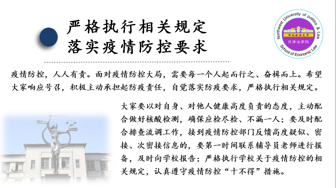 2021级研究生以“慎终如始战疫情”为题召开此次主题班会,通过数据图表引导同学们认识当前疫情防控工作的严峻性,就如何配合永利娱乐场官网 开展管控工作及其重要性进行了逐条列举,并就封校期间学习生活作息、心理健康、个人防护方面提出多点倡议。