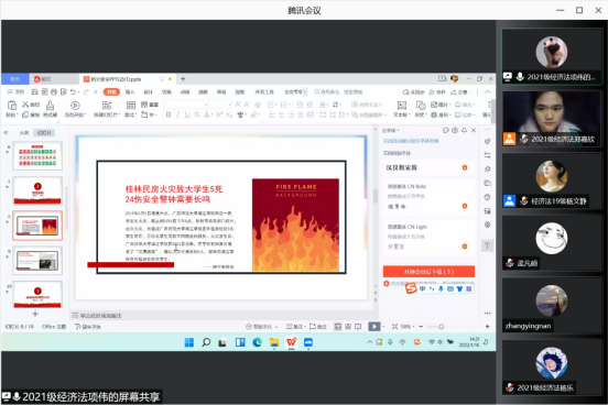 特于2022年1月16日下午在腾讯会议召开防火知识宣传主题班会。