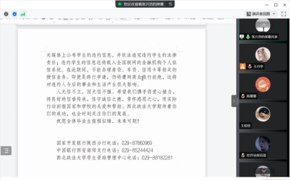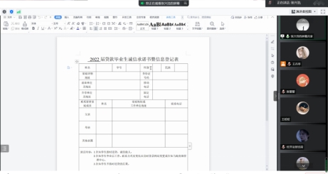 通过线上形式开展“感恩助学,诚信还款”毕业生诚信之约活动,辅导员张兴浩主持,全体2022届贷款毕业生参加。