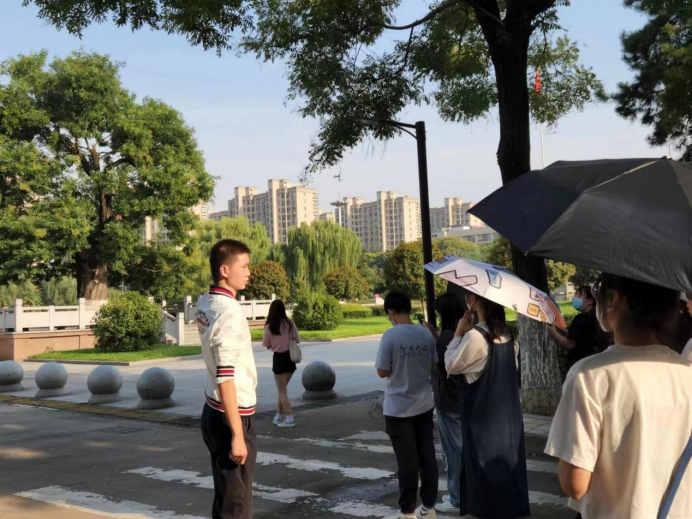 下午4:30,2022级新生以班级为单位,按照规划路线跟随负责志愿者开启了错峰游园的活动。现在让我们跟随讲解队伍,用脚步探索美丽的校园吧!第一站从宿舍区域沿明辨路进入天平广场。置身天平广场,不远处便是永利娱乐场官网
