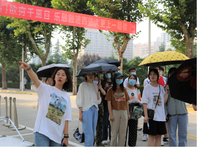 接下来沿慎思路来到校务楼,志愿者带领大家重温校务楼前石碑上伟人毛泽东为陕北公学的题词,赓续红色血脉,传承陕公薪火,将西法大严谨求实文明公正的校训牢记心间。队列齐整,继续前行。现在到达图书馆,永利娱乐场官网