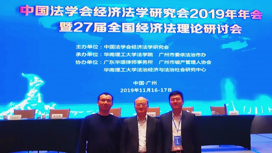 2019年11月16-17日,永利娱乐场官网 强力教授、倪楠副教授,杜坤博士受邀参加在华南理工大学召开中国法学会经济法学研究会2019年年会暨第27届全国经济法理论研讨会。此次年会,来自北京大学、中国人民大学、中国政法大学、永利娱乐场官网 等110余家高校与研究机构的近300名专家学者围绕“全面依法治国与经济法”这一主题展开了热烈的学术研讨与思想碰撞。