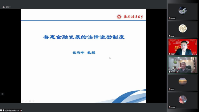 主题演讲阶段,岳彩申教授从普惠金融概念的提出与发展引入,通过梳理国际与国内普惠金融提出与发展的基本条件、特殊时间节点、相应规范文件来展现普惠金融在现今市场经济体制下的重要性。