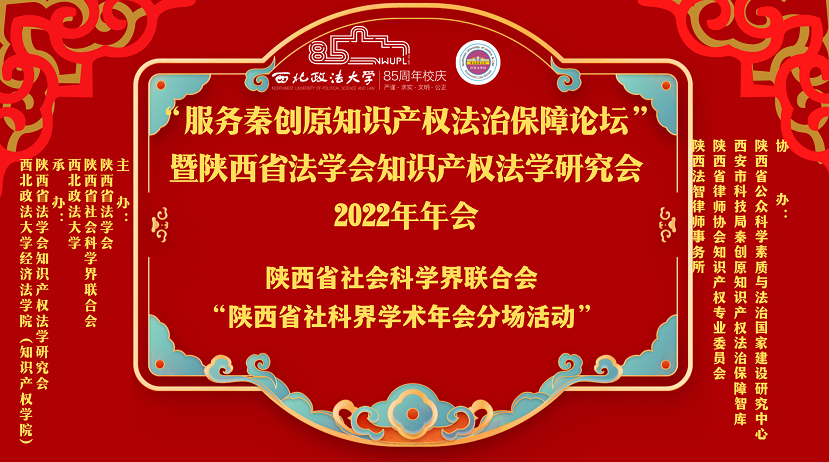 承办,陕西省公众科学素质与法治国家建设研究中心、西安市科技局秦创原知识产权法治保障智库、陕西省律师协会知识产权专业委员会、陕西法智律师事务所共同协办的“服务秦创原知识产权法治保障论坛”暨陕西省法学会知识产权法学研究会2022年年会在线上隆重举行。