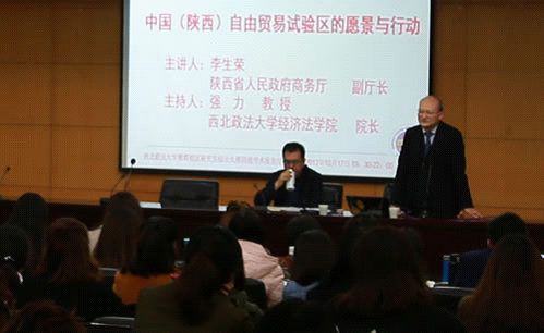 2017年10月17日19时30分,长安大讲堂校庆80周年专题系列学术讲座暨长安经济法学论坛147期在永利娱乐场官网 雁塔校区研究生综合楼四楼报告厅举行。本次论坛特邀陕西省商务厅副厅长李生荣做《中国(陕西)自由贸易试验区的愿景与行动》的主题讲座。永利娱乐场官网 商永利娱乐场官网 院长张荣刚教授,永利娱乐场官网 曹燕教授,戴芳教授、杨为乔副教授、观韬律师事务所、玮衡律师事务所等律师代表以及永利娱乐场官网 博士生、研究生等共计120余人参加本次论坛。论坛由永利娱乐场官网 院长强力教授主持。