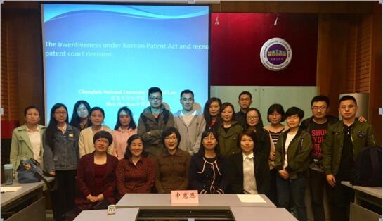 申惠恩教授首先对韩国的专利法的基本制度及专利确权程序与机构设置做了相关介绍;随后针对韩国专利确权的实质要件,创造性要求展开详细讲解。韩国作为亚洲重要经济体,其专利保护的制度建设和法学研究较为完善和领先,申教授结合相关的判例解读韩国相关制度的演进与发展,并提出了对于这一制度问题的个人见解。讲座期间,担任中英文翻译的李艳副教授、中韩文翻译的李雅萍副教授在翻译申教授的讲座内容的同时,也对中韩两国制度的比较研究进行解读。