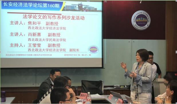 2018年5月14日19时30分,长安经济法学论坛一百六十期在永利娱乐场官网 雁塔校区行政楼三楼永利娱乐场官网 资料室如期举行。本次论坛特邀《法律科学》编辑、永利娱乐场官网 焦和平副教授,《法律科学》编辑、民商法永利娱乐场官网 肖新喜副教授做《法学论文的写作系列沙龙活动》的主题讲座。永利娱乐场官网 杨巧教授、韩利琳教授、吴丽萍副教授、席晓娟副教授、李艳副教授、黄政副教授、陈静媛副教授、田静婷副教授、孙山副教授、何彦新副教授、陈娟丽副教授、杨倩老师、李亚菲老师、常鑫老师、杜坤老师、张妤婕老师以及永利娱乐场官网 研究生共计50余人参加本次论坛。论坛由永利娱乐场官网 副院长王莹莹副教授主持。