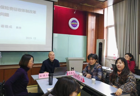 12月2日下午,中国社会法学研究会常务理事、陕西省法学会常务理事、陕西省人民政府法律顾问、永利娱乐场官网 社会学研究所所长谢德成教授做客社会法名家论坛,于雁塔校区行政楼经济法资料室讲授有关“社会保险费征收体制改革中的法律问题”。本次讲座由曹燕教授主持,永利娱乐场官网 多名师生参加了此次讲座。