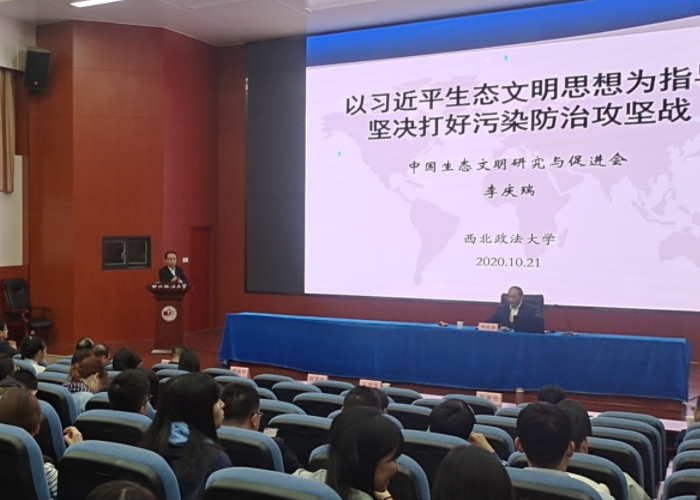 雁塔校区人权研究院报告厅举行。本次论坛特邀原河南省环保厅厅长、环保部政法司司长、人事司司长、现中国生态文明研究与促进会副会长李庆瑞博士做主题演讲。演讲主题为《以习近平生态文明思想为指导坚决打赢污染防治攻坚战》。
