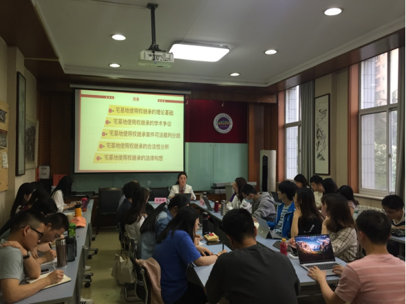 其次,主题报告环节。田静婷副教授从宅基地使用权继承的理论基础、宅基地使用权继承的学术争议、宅基地使用权继承案件司法裁判分歧、宅基地使用权继承的合法性分析以及宅基地使用权继承的法律制度构想这五个方面介绍了本次主题报告内容。田静婷副教授首先归纳和整理了目前我国对于宅基地使用权继承的法律法规;介绍了对宅基地使用权继承的两种不同学术观点,梳理了司法裁判对于宅基地使用权继承的裁判理由并指出法律适用的分歧。从物权平等原则、保护公民私有财产权原则和用益物权属性方面对宅基地使用权继承的合法性进行深入分析。最后,提出宅基地使用权继承的法律制度构想。田静婷副教授认为宅基地使用权的继承应明确宅基地使用权权利主体的界定、在强化宅基地使用权财产属性的同时,合理扩大宅基地使用权的继承范围,建立健全宅基地使用权继承的配套措施。