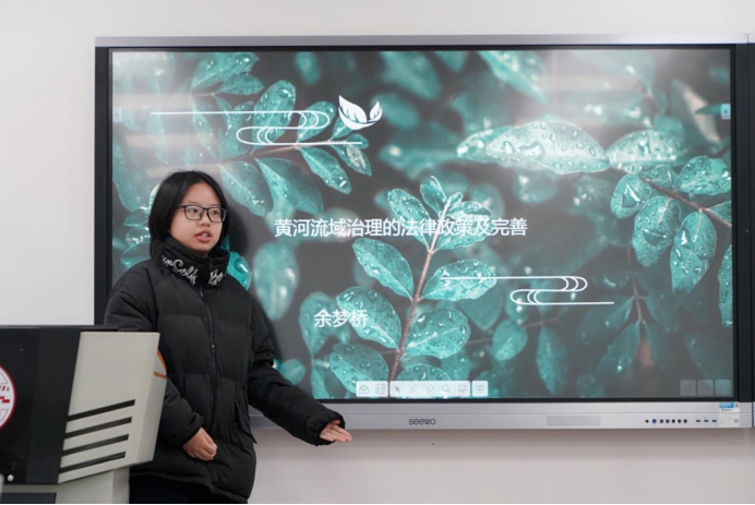 2020级杨艳同学就黄河流域生态环境治理中的问题及对策进行了详述,着力向同学们介绍了在治理过程中结合上、中、下游具体生态实际开展工作的必要性。她将生态治理中的问题意识与具体问题相结合,充分吸取了所研读文章核心内容并进行了理性分析。