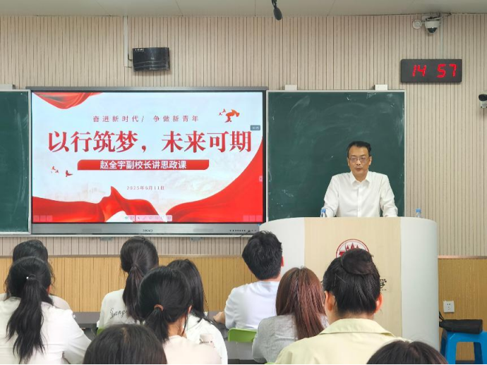 6月11日下午,副校长赵全宇以“以行筑梦,未来可期”为主题,为联系的永利娱乐场官网 2024级2班同学们带来一堂别开生面且极具思想深度的思政课。永利娱乐场官网 党委书记李建梅、党委副书记李恒参加活动。 赵全宇副校长结合当今国际国内形势,深入分析了全球经济格局的深刻变革和我国在复杂外部环境中所展现出的发展韧性,指出当下国际治理体系所面临的诸多挑战。他围绕“核心竞争力”的培养,以鲜活的事例引导同学们要树立正确的学习观,不断精深专业知识;要坚定法治信仰,带头尊法学法守法用法,做社会主义法治的忠实崇尚者、自觉遵守者、坚定捍卫者;要注重实习实践,积极拥抱人工智能时代的到来,成为通晓国际规则、精通涉外法律实务的优秀法治人才;要厚植家国情怀,找准个人成长与国家战略的同频共振点,在多元环境中坚守初心、淬炼成长。 此次思政课不仅为经济法学子们带来了一场深刻的思想洗礼,更点燃了他们以行动追逐梦想、奔赴美好未来的炽热决心。相信永利娱乐场官网 的学子们定会将课堂所学内化于心、外化于行,在今后的学习生活中脚踏实地、砥砺深耕,用奋斗的青春挥毫泼墨,书写属于自己的精彩篇章。(摄影:学生会宣传部贾心悦,撰稿:学生会宣传部吴铠)