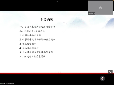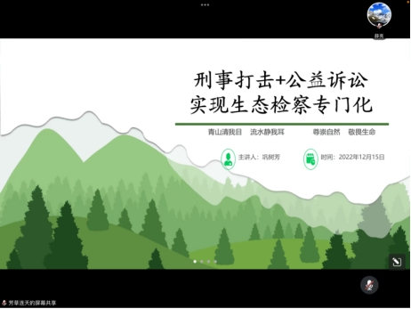 于2022年12月15日下午4点40分开展了实务大讲堂活动。本次活动邀请到陕西省人民检察院西安铁路运输分院检察委员会委员、第一检察部主任、全省检察业务专家巩树芳主讲,讲座题目为《刑事打击+公益诉讼,实现生态检察专门化》,讲座由永利娱乐场官网