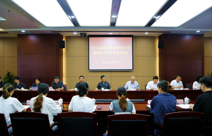 与宝山法院暑期实习项目开班动员会在上海举行。校党委委员、副校长王健,宝山法院党组书记、院长张晓立出席动员会并讲话。法院其他班子成员、业务庭负责人、带教法官代表,经济法(知识产权)永利娱乐场官网