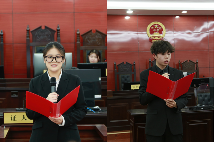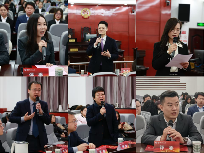 团委书记王文老师宣读了获奖名单,各位评委老师为在法条拼贴诗和和读书心得征文活动中脱颖而出的同学颁奖并合影留念。在闭幕式上,陕西省委党校衡飞玲教授做了精彩的点评和总结发言,从规范着装到法律专业用语的打磨再到法槌的使用程序等,都对参赛同学进行了细致的指导。获奖学生代表赵梓达同学认为获奖不仅是一种荣誉,更是一份责任和激励,并希望同学们在法治道路上不断砥砺前行。