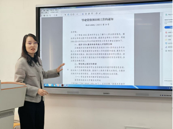 会议第二阶段,黄紫琦老师为大家讲解毕业论文形式要件注意事项,要求大家按照时间规划撰写论文,积极联系指导老师,根据修改意见打磨文章内容,养成良好的学术写作习惯,为论文质量奠定坚实基础。随后对论文管理系统操作进行了现场演示,着重指出了几类常见问题,并给出了具体的解决方案和建议。
