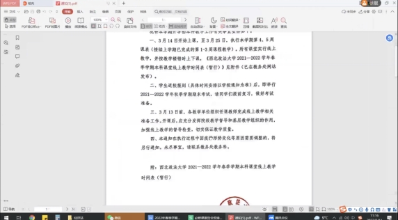 关于2022年春季学期本科、研究生线上教学工作安排,强调3月14日开始进行线上授课,教师应及时与学生建立联系。教务办组织课程负责人填写线上授课台账,各教研室主任、学科秘书应落实线上查课工作,督促教师严格执行错峰授课时间表。薛亮副院长结合校院两级教学督导专家提出的意见和建议,强调了线上教学中应该注意的问题。
