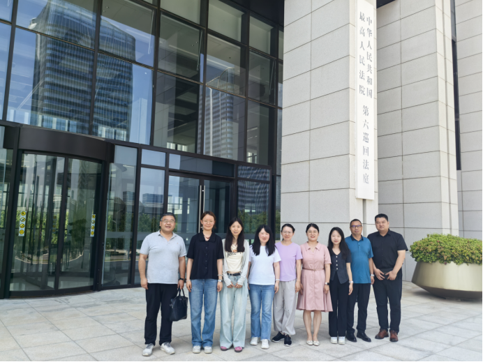 副院长肖新喜教授等一行前往最高人民法院第六巡回法庭开展研究生实训中期检查工作并看望正在实训的2023级研究生李萌祁、黄志鸿、张玉欣同学。三位同学于2025年3月通过遴选进入最高人民法院第六巡回法庭进行为期6个月的实训。