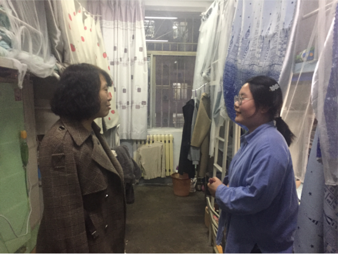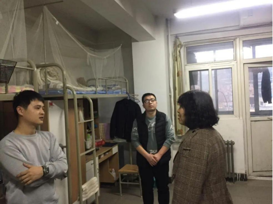 党委书记李建梅与毕业班辅导员分别深入2019级本科生、2020级研究生学生宿舍,就现在毕业生人数多、就业难的现状进行调研,并鼓励同学们认真准备就业,树立正确的就业观,多方面提升自己的就业能力,积极就业,并为同学们送上就业暖心提示。