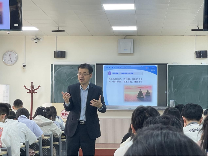 副校长张荣刚教授在长安校区格物楼306教室为同学们讲授了一堂以“管理思维下的人生黄金阶段成长”为主题的思政课。永利娱乐场官网