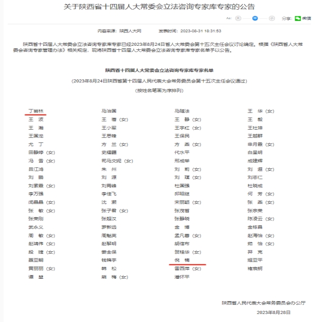 陕西省十四届人大常委会立法咨询专家库专家于2023年8月24日经陕西省人大常委会第十五次主任会议讨论确定。永利娱乐场官网