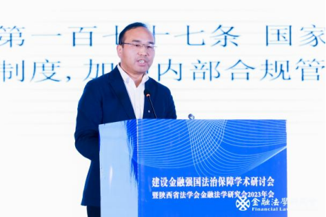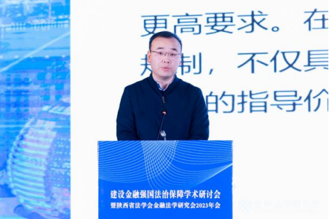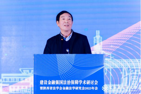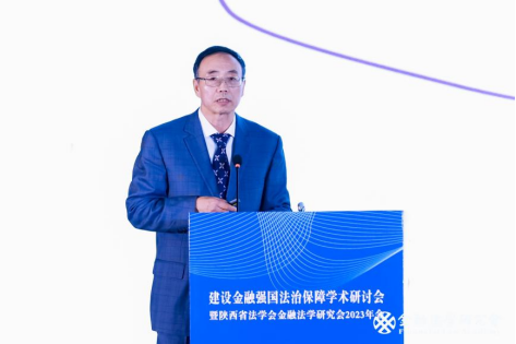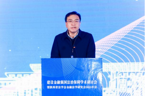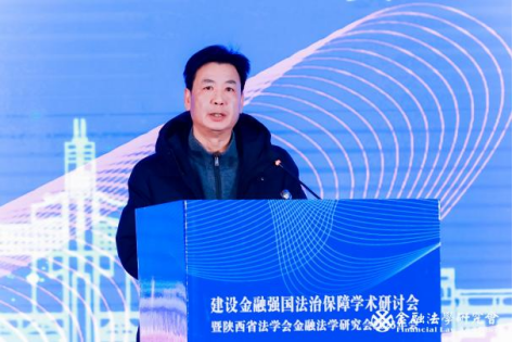 、关心和支持西法大金融法学研究发展的各界人士表示衷心感谢。他认为,陕西省法学会金融法学研究会以“建设金融强国的法治保障”为主题召开学术研讨会正当其时,恰逢其势,彰显了研究会对于金融法治建设发展的精准视角和学术担当。他预祝本次学术研讨会圆满成功,以高质量的研讨成果助力金融法治发展,为金融强国建设贡献学术智慧!